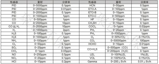2、傳感 器:PID/LEL/TC/EC/NDIR/Gamma