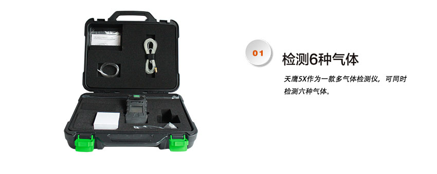 天鷹5X作為目前市場上常見的多氣體檢測儀,突破原有的四合一、五合一氣體檢測儀,在可以檢測可燃氣/氧氣/一氧化碳/硫化氫這四種工業(yè)領(lǐng)域常見的危害性氣體外,還配備了用于檢測二氧化硫/氯氣/氨氣/氰化氫/磷化氫/二氧化氯的電化學傳感器,除此之外天鷹5X還可以增配一個紅外傳感器用于二氧化碳或可燃性氣體(碳氫化合物)的體積比濃度,使得同時檢測氣體數(shù)量達到六種。