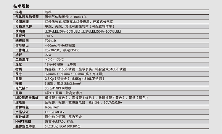 PrimaX IR Pro點(diǎn)式紅外可燃?xì)怏w探測(cè)器,采用雙重冗余紅外光源技術(shù),以及開放式長(zhǎng)氣室設(shè)計(jì),有效降低雨水、煙霧、灰塵,以及其他環(huán)境因素的影響,賦予產(chǎn)品極佳的可靠性能;其光學(xué)系統(tǒng)專為信號(hào)靈敏度優(yōu)化設(shè)計(jì),使得產(chǎn)品具備極佳的穩(wěn)定性和更快的晌應(yīng)速度。
