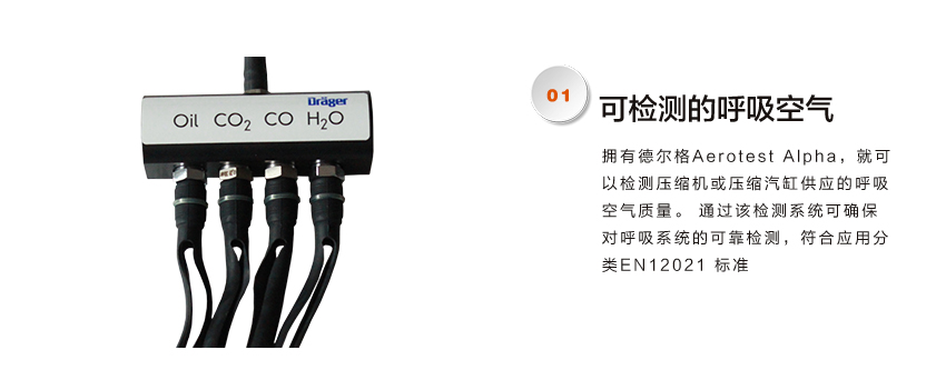 擁有德?tīng)柛?/span>Aerotest Alpha,就可以檢測(cè)壓縮機(jī)或壓縮汽缸供應(yīng)的呼吸空氣質(zhì)量。 通過(guò)該檢測(cè)系統(tǒng)可確保對(duì)呼吸系統(tǒng)的可靠檢測(cè),符合應(yīng)用分類(lèi)EN12021 標(biāo)準(zhǔn)。