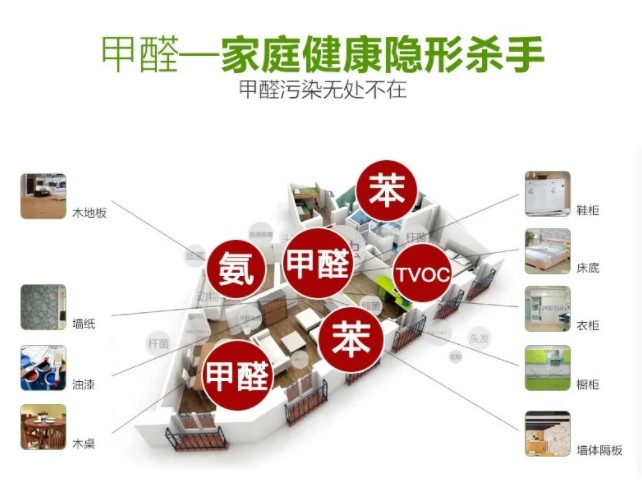 甲醛釋放期很長,一般長達3-15年,使甲醛成為室內(nèi)空氣中的主要的污染物之一。