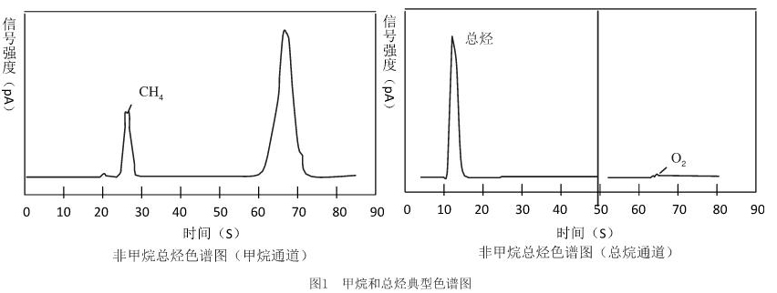 (3)采用兩個定量環(huán),兩根色譜柱,一個F ID檢測器測定總烴和甲烷的濃度,色譜圖見圖3
