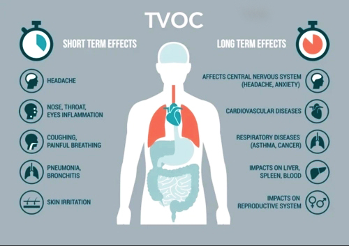 VOC即揮發(fā)性有機化合物,對人體健康有巨大影響。當(dāng)居室中的VOC達到一定濃度時,短時間內(nèi)人們會感到頭痛、惡心、嘔吐、乏力等,嚴(yán)重時會出現(xiàn)抽搐、昏迷,并會傷害到人的肝臟、腎臟、大腦和神經(jīng)系統(tǒng),造成記憶力減退等嚴(yán)重后果。