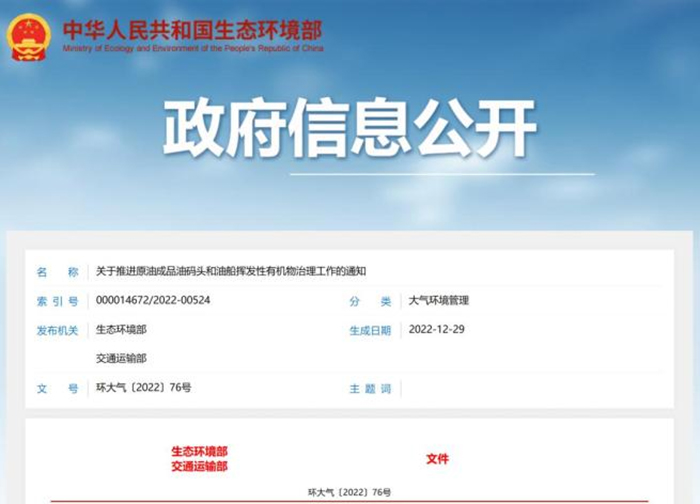 日前,生態(tài)環(huán)境部和交通運(yùn)輸部聯(lián)合印發(fā)《關(guān)于推進(jìn)原油成品油碼頭和油船揮發(fā)性有機(jī)物治理工作的通知》(環(huán)大氣〔2022〕76號(hào))。《通知》包括 6 條內(nèi)容,要求各級(jí)生態(tài)環(huán)境和交通運(yùn)輸主管部門做好對(duì)油碼頭、油船油氣治理的監(jiān)督指導(dǎo)工作,并對(duì)企業(yè)在油氣回收設(shè)施建設(shè)運(yùn)行方面的責(zé)任進(jìn)行了明確。