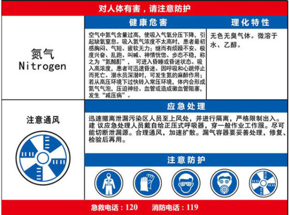 4.在可能發(fā)生氮氣泄漏的危險場所懸掛安全警示標識,嚴禁無關(guān)人員進入該區(qū)域。