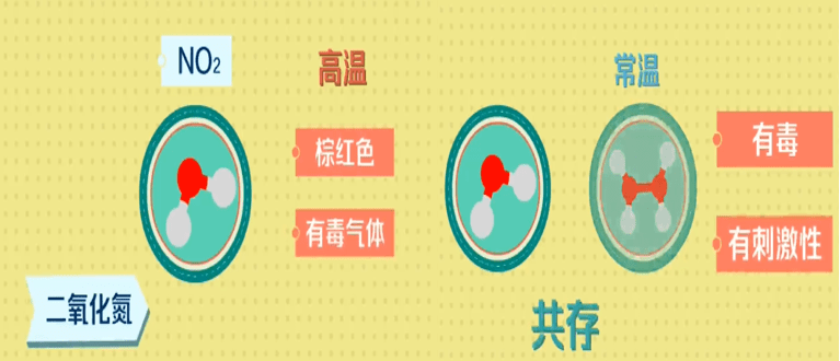但二氧化氮溶于水后并不會(huì)完全反應(yīng),所以會(huì)有少量二氧化氮分子存在,為黃色,因此硝酸溶液會(huì)呈現(xiàn)黃色低溫度,平衡向四氧化二氮合成的方向移動(dòng)。