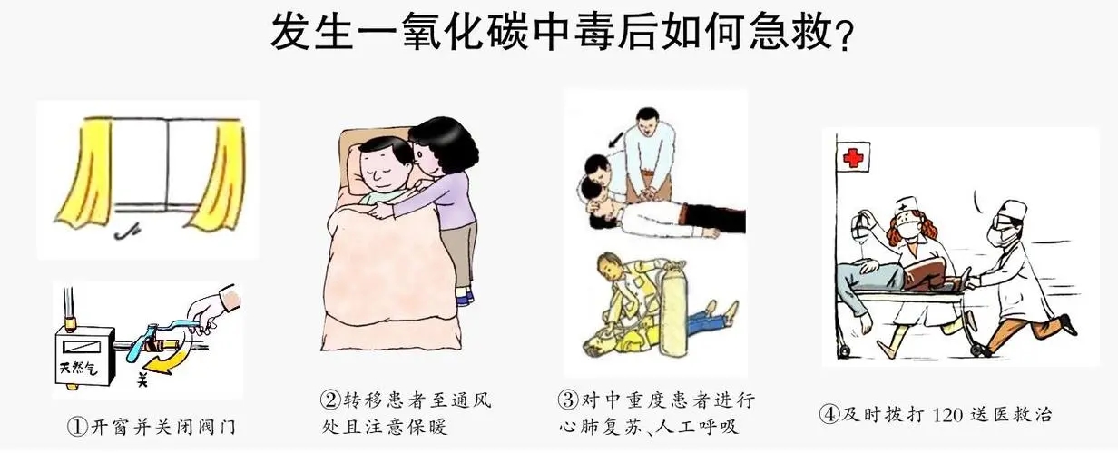 1.首先立即開窗通風,使空氣對流,迅速關閉煤氣/燃氣灶具、熱水器閥門、管道煤氣、熄滅炭火等設施設備。
