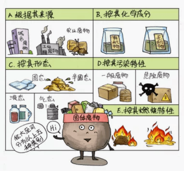 根據《中華人民共和國固體廢物污染環(huán)境防治法》(1995年公布)分為城市生活垃圾、工業(yè)固體物和危險廢物。