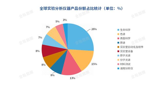 近年來(lái),隨著機(jī)械、電子、信息、軟件等與實(shí)驗(yàn)分析儀器領(lǐng)域相關(guān)的基礎(chǔ)行業(yè)不斷發(fā)展進(jìn)步,以及物理、化學(xué)、光學(xué)、生命科學(xué)等各學(xué)科領(lǐng)域分析技術(shù)的加速創(chuàng)新,實(shí)驗(yàn)分析儀器也實(shí)現(xiàn)了快速發(fā)展。從全球?qū)嶒?yàn)室分析儀器細(xì)分領(lǐng)域看,生命科學(xué)、色譜兩個(gè)領(lǐng)域占比最多,分別占總市場(chǎng)規(guī)模的26%和15%。